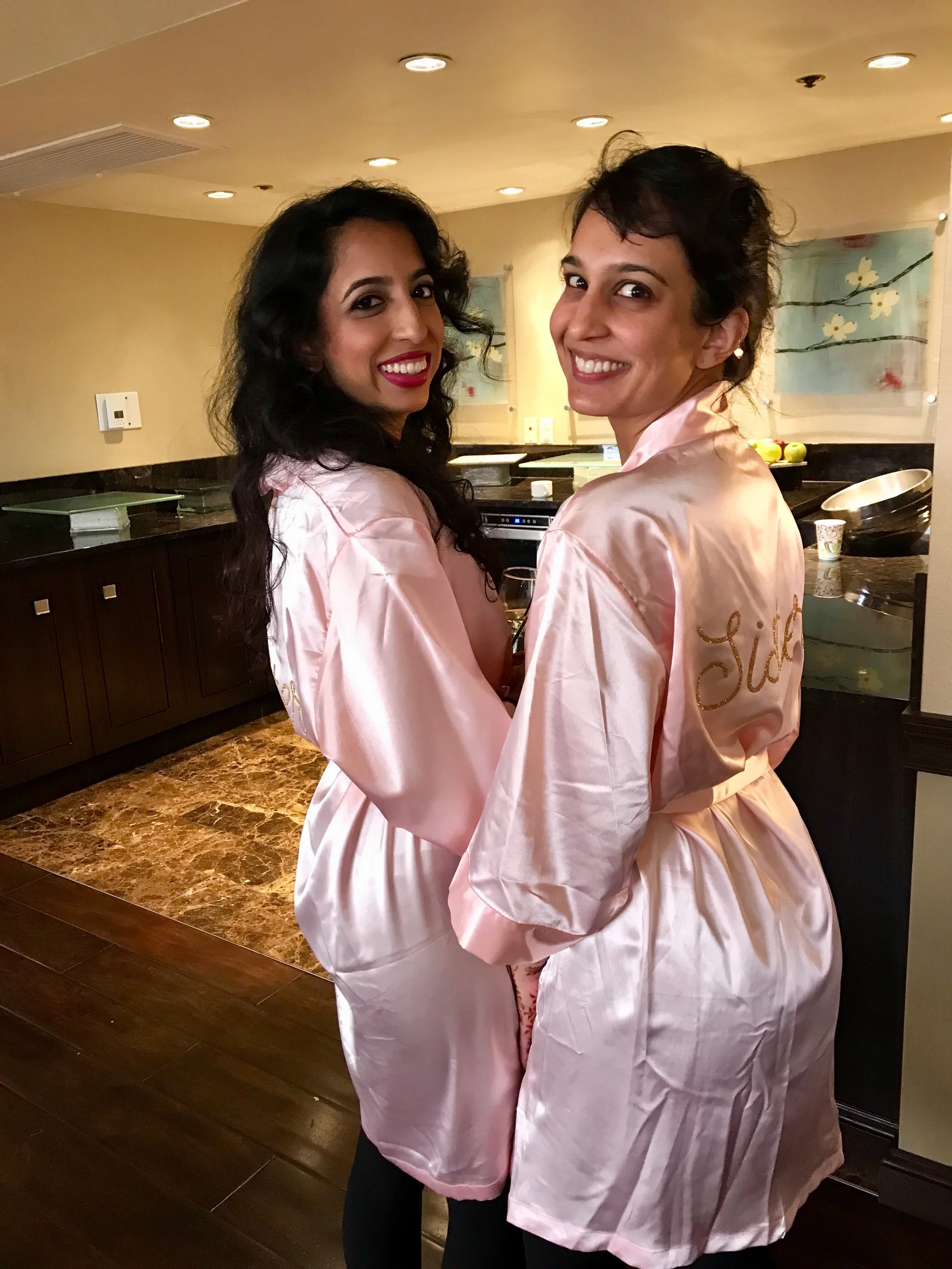 The next morning was WEDDING DAY!!! Sonam, Mom, and I woke up early to get ready with Jaya and her gals in her bridal suite, and we left Shovaen to be taken care of by his groomies (which clearly worked out okay). Even though it was Jaya’s day, she made sure to share some wise advice on how we should do our hair and makeup - finished look in the first photo below (Sonam looks nice).