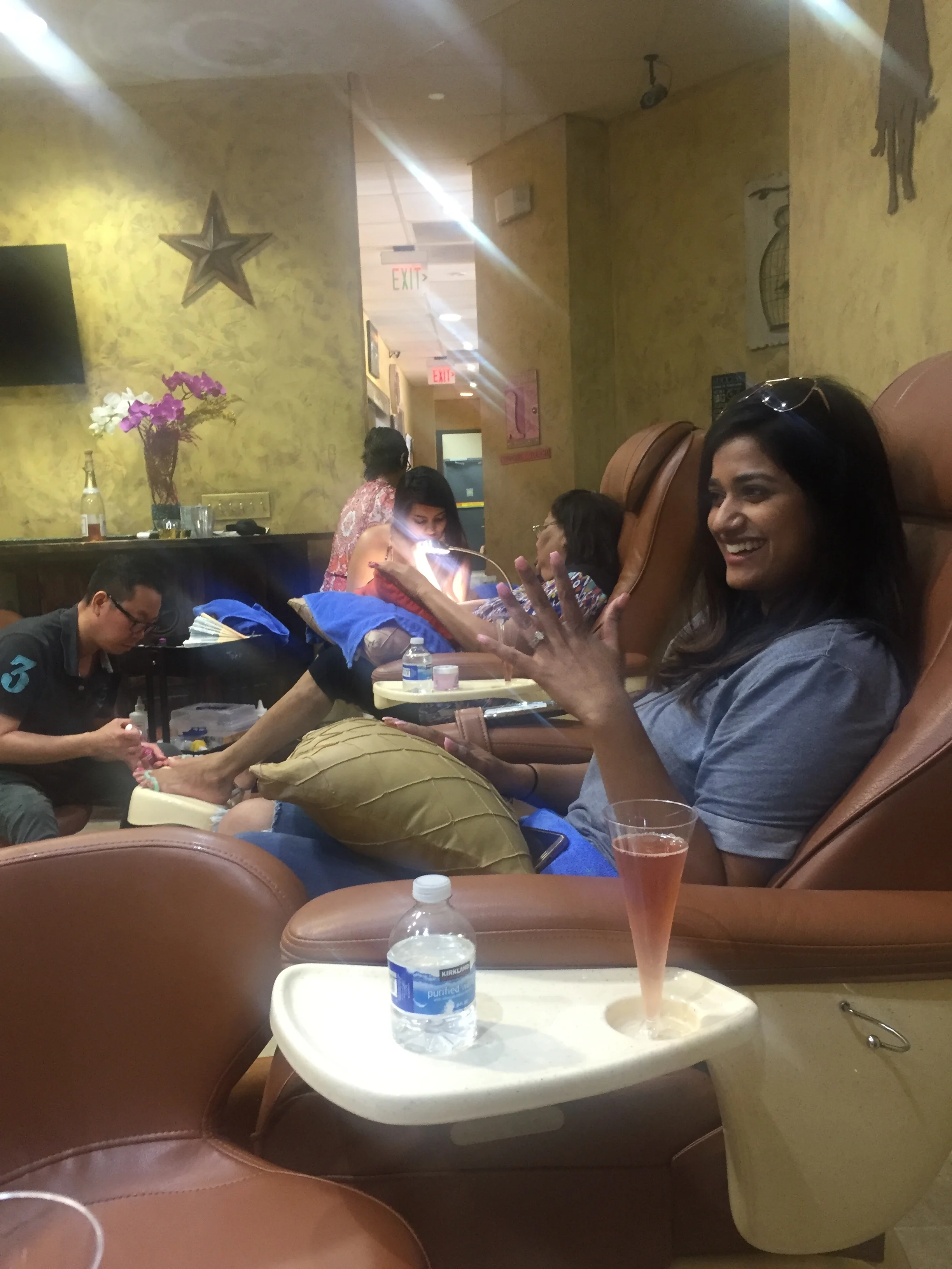 One of my favorite moments was getting a Mani pedi with all the ladies! Even though I was working it was still such a fun time. Especially when Mom insisted that the champagne at the establishment was too subpar for her daughter in law’s bridal celebrations and went with Mausami to get some of the good stuff at the shop next door! (And we were all really thankful!)